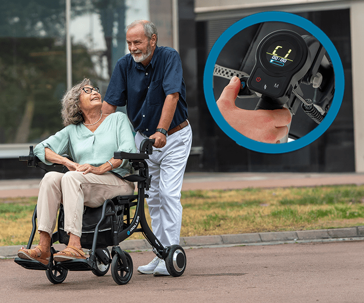 The motor provides an electrical assistance that completely reduces the physical burden on the caregiver. The outstanding feature of this function is its adaptability to the desired speed of the attendant.