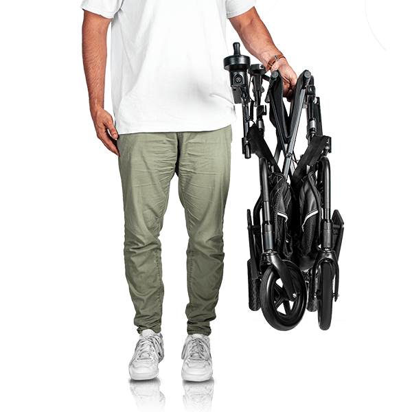 The iRoller folds parallel thanks to its cross-brace, ensuring fast and compact folding. Its dimensions when folded are only 30 cm wide and 77.5 cm high, making it an ideal choice for transporting in the car boot and other small spaces.
