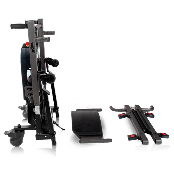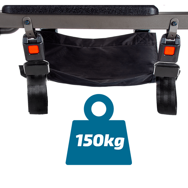 La Aúpa Chair Mini está equipada con dos patas laterales, con una apertura total de 42 cm, facilitando las transferencias en camas, sofás, y su uso en el WC.