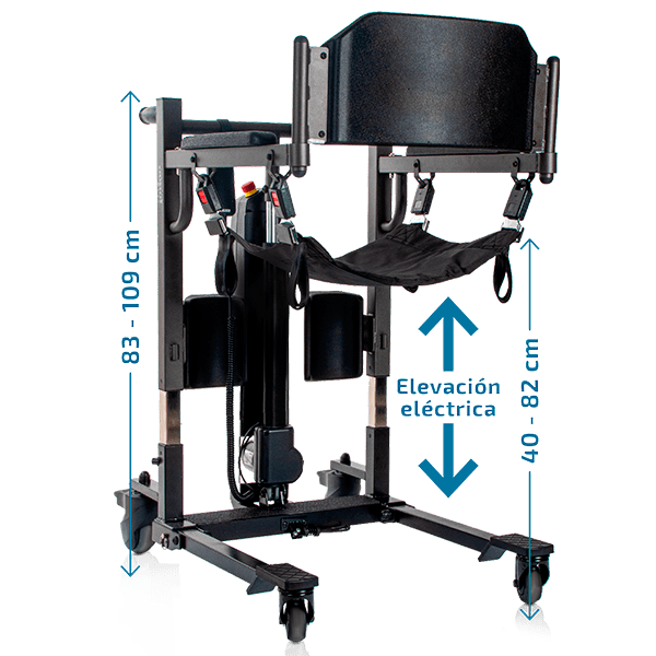 También permite realizar transferencias a sillas de ruedas, abata los reposabrazos y posiciónela. La transferencia en silla de ruedas se realiza de manera más óptima con el modelo Aúpa Chair T-Flex, gracias a su pata central.