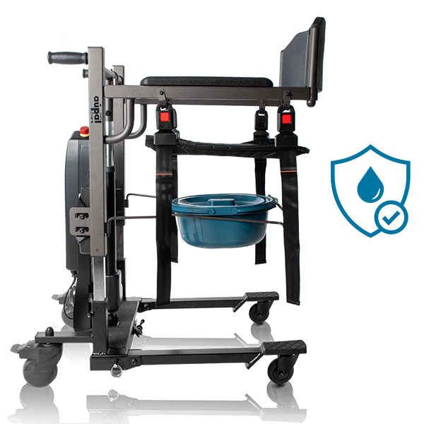 Ingrese fácilmente a la ducha o a cualquier zona húmeda de su baño para garantizar una higiene personal óptima para el usuario. El chasis de la Aúpa Chair es resistente al agua.