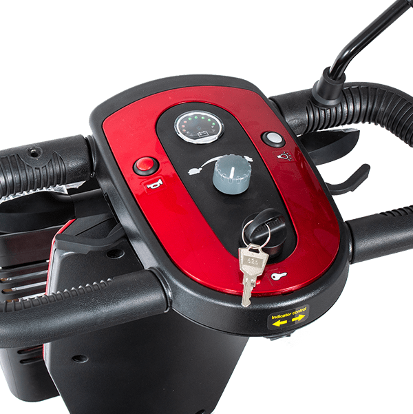 El scooter Mallorka cuenta con un completo panel de control intuitivo diseñado para ser utilizado por personas de todas las edades. Incluye botones para el claxon, las luces, la regulación de velocidad y un indicador de la carga de la batería. La conducción del scooter Mallorka es cómoda y fácil de manejar para todos los usuarios.