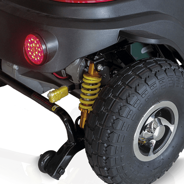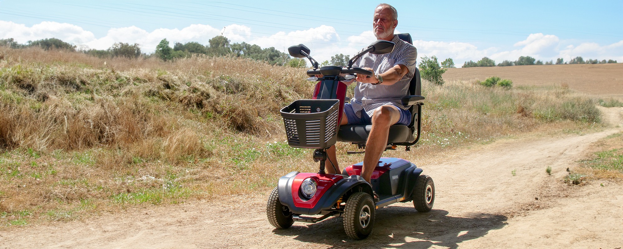 El scooter Mallorka, gracias a sus dimensiones y grandes ruedas de Ø 26 cm, se destaca como la elección perfecta para aquellos que residen en áreas rurales, ya que permite conducir con facilidad en terrenos irregulares, incluyendo superficies de tierra y otros obstáculos.