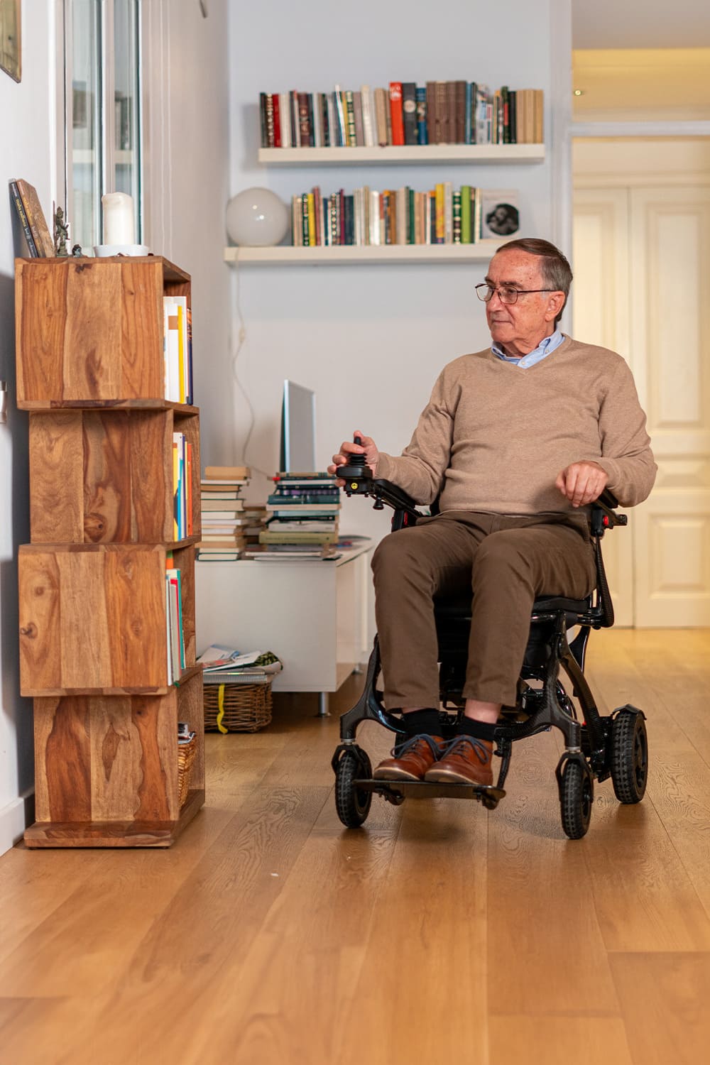 La Kittos Carbon es perfecta para la movilidad en espacios reducidos gracias a sus dimensiones compactas (57 cm de ancho y 72 cm de profundidad) y su reducido radio de giro de 80 cm. Esto garantiza una perfecta circulación en áreas estrechas tanto en interiores como en exteriores.