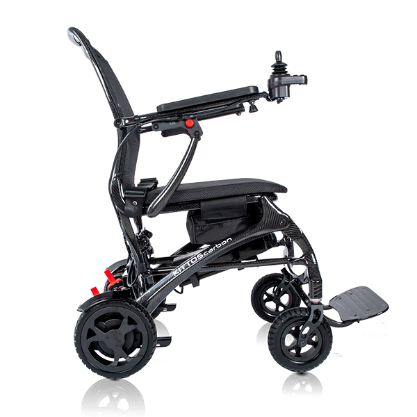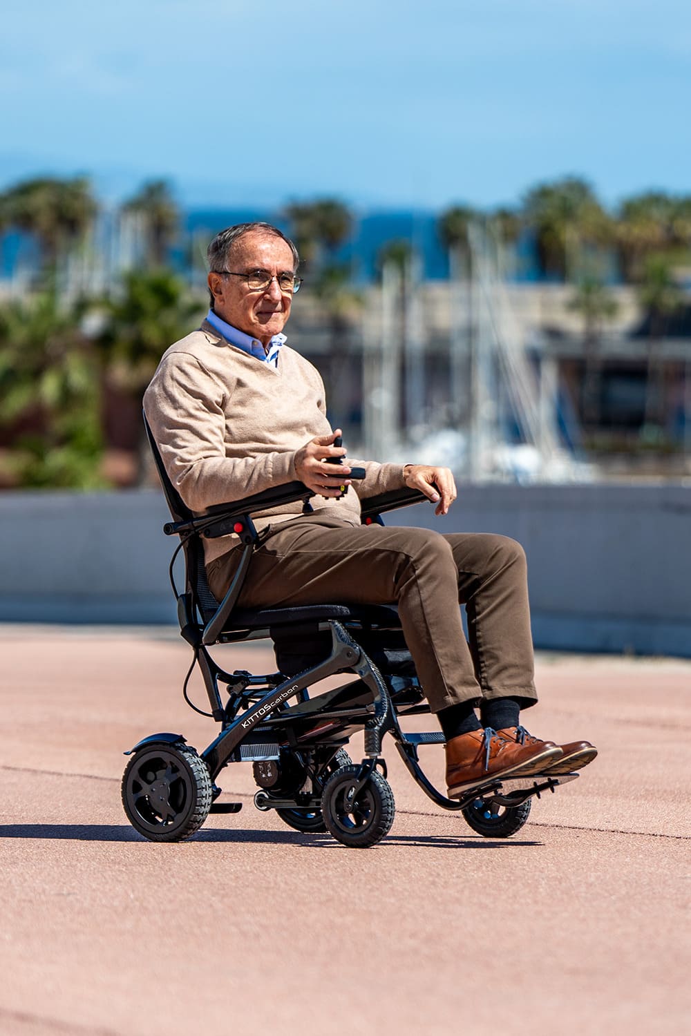 La Kittos Carbon, fabricada en fibra de carbono, sorprende con su peso de tan solo 14,5kg (sin batería). Esta silla, líder en ventas en España, destaca por su diseño compacto, su peso ultraligero y sus acabados de alta calidad.