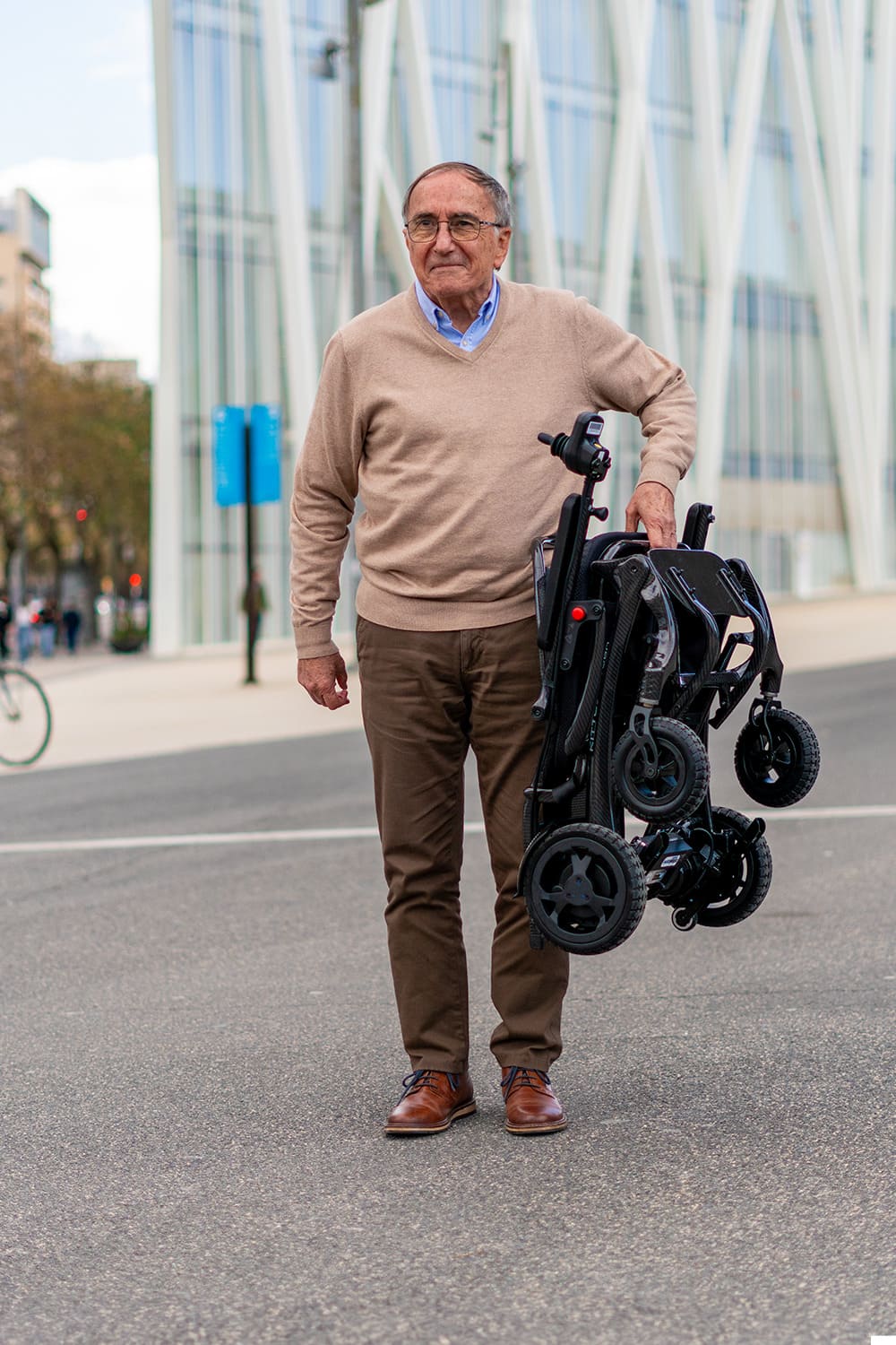 Sus dimensiones reducidas la convierten en la opción ideal para la movilidad en espacios estrechos, tanto en interiores como en exteriores. Equipada con dos motores de 250W, alcanza una velocidad de 6 km/h y ofrece dos opciones de batería de litio: 12 Ah y 20 Ah, esta última proporcionando una autonomía de hasta 25 km.