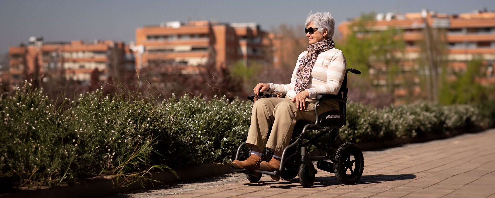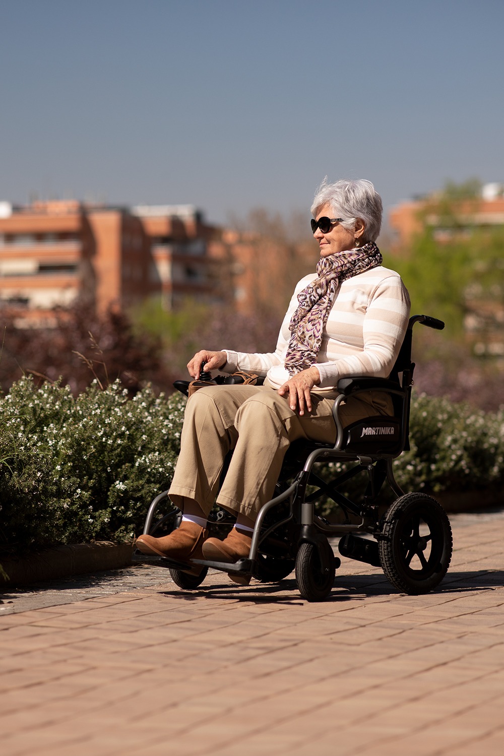 La silla plegable Martinika se distingue por su facilidad y rapidez de plegado como una silla de ruedas manual. Gracias a sus motores paralelos y el respaldo abatible, ofrece el plegado más eficiente del mercado, reduciendo su ancho a tan solo 35 cm.