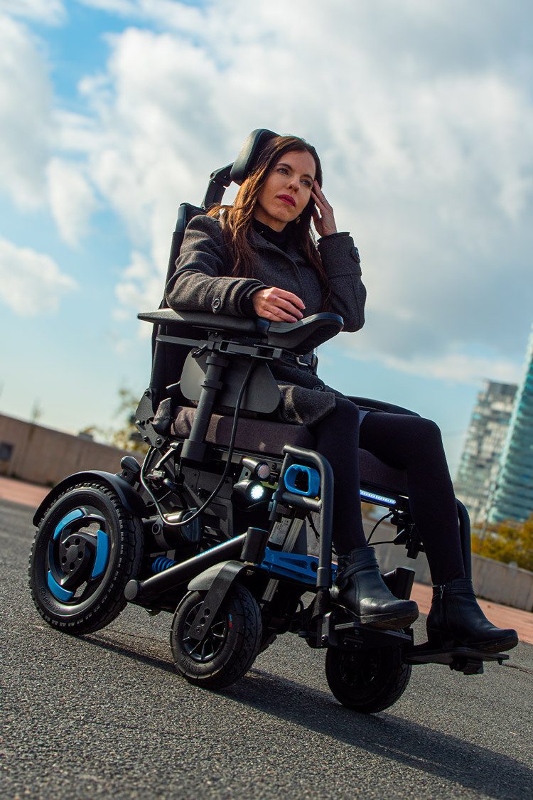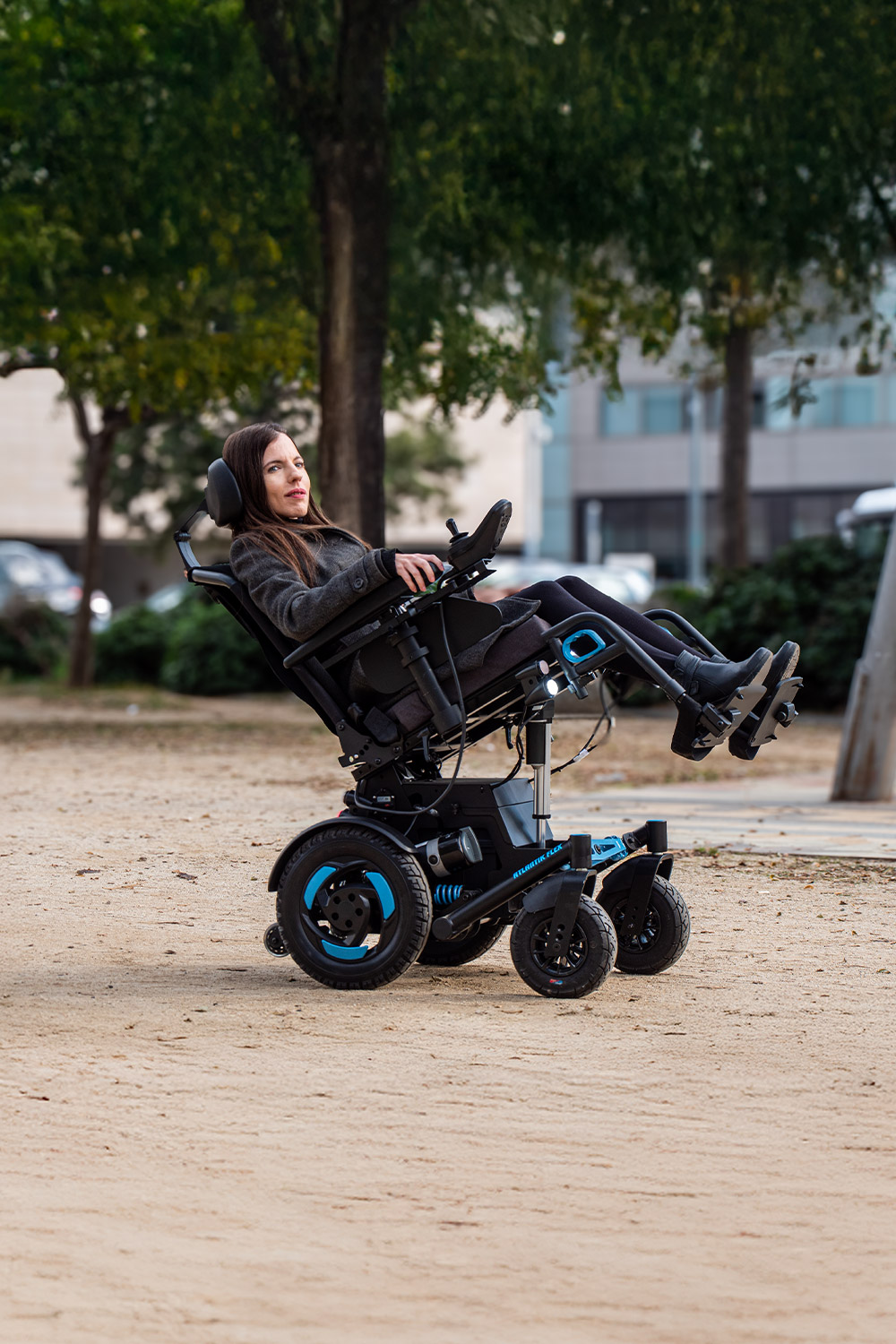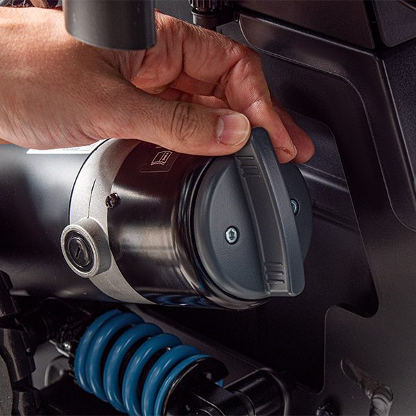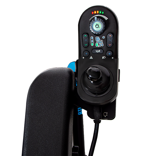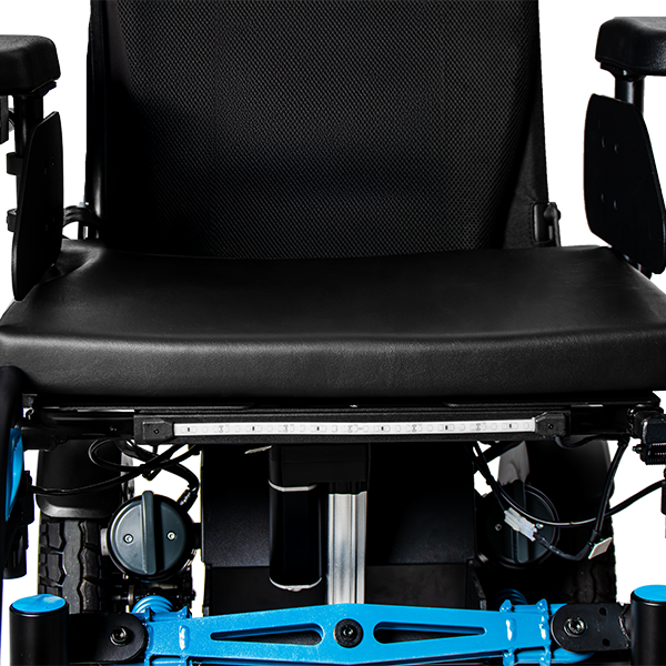 Dispone de un pistón de basculación eléctrica que permite regular la inclinación del asiento de 0º a 25º. El ajuste se realiza de forma fácil y rápida directamente desde el joystick.
