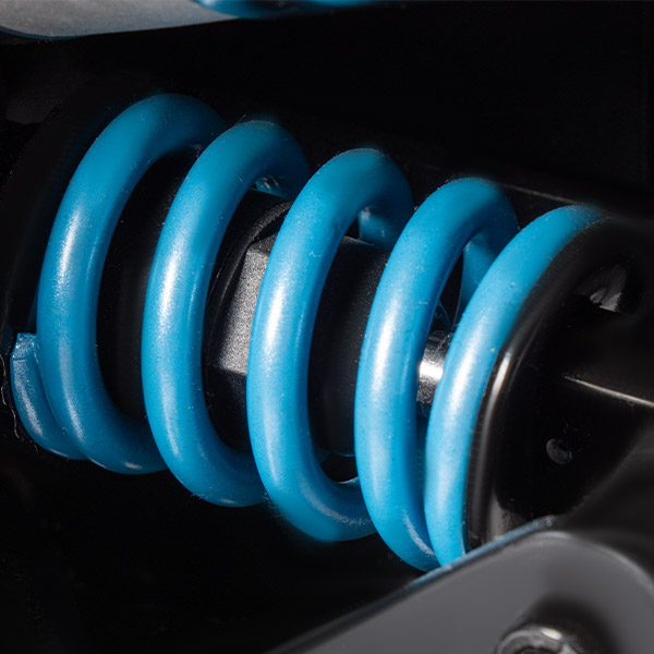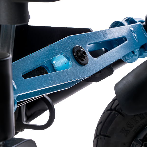 Presentamos el nuevo sistema de amortiguación mediante cruceta, que permite que la suspensión flexione y bascule, para adaptarse a todo tipo de terrenos, suavizando las irregularidades para el usuario y facilitando el paso por bordillos de hasta 10 cm.