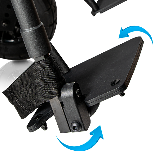 Las plataformas metálicas de los reposapiés son ajustables en inclinación, permitiendo al usuario seleccionar el ángulo deseado.