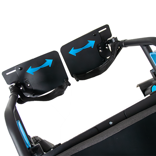 Las plataformas individuales de los reposapiés son ajustables en ancho, permitiendo acercarlas hasta formar prácticamente una única plataforma.