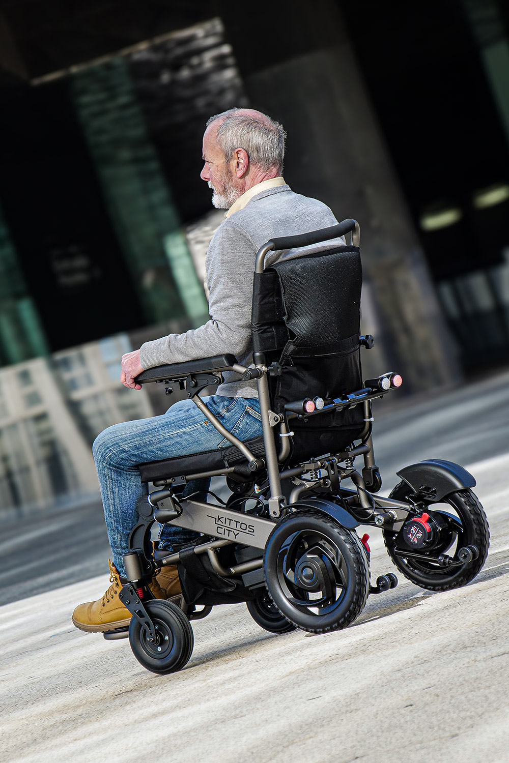 Le Kittos City est le fauteuil électrique pliable le plus polyvalent du marché, et la personnalisation est la clé. Complétez-le avec une large gamme d'accessoires, tels que le dossier NXT, un appui-tête confortable, un coussin anatomique, des feux LED et bien plus encore, pour l'adapter à vos besoins.