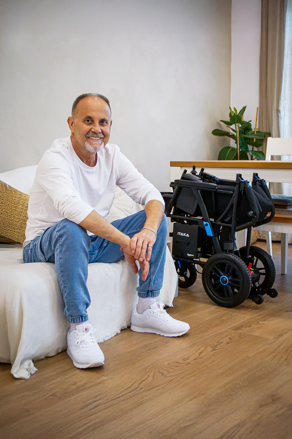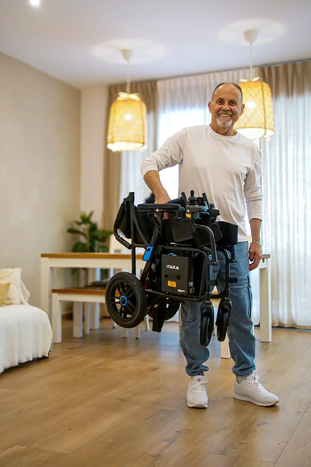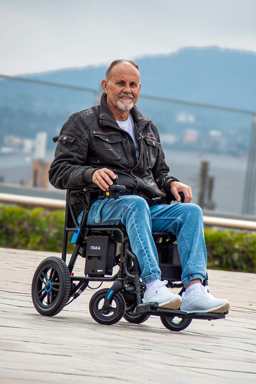 L'iTaka, realizzato in alluminio, sorprende con il suo peso di soli 15,8 kg (senza batteria). Questa sedia si distingue per il design compatto, il peso ultraleggero e le finiture di alta qualità.