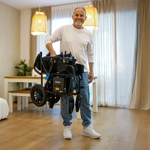 Progettata con un telaio in alluminio di alta qualità, la sedia iTaka si distingue per la sua straordinaria leggerezza, con un peso totale di soli 15,8 kg senza batterie. Il suo design ottimizzato consente un'eccellente manovrabilità senza compromettere la resistenza e la stabilità.