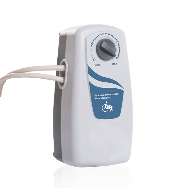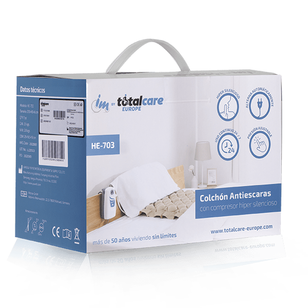 O compressor insufla e desinsufla os diferentes compartimentos do colchão, alternando e alterando os pontos de pressão sobre os quais o doente se apoia.