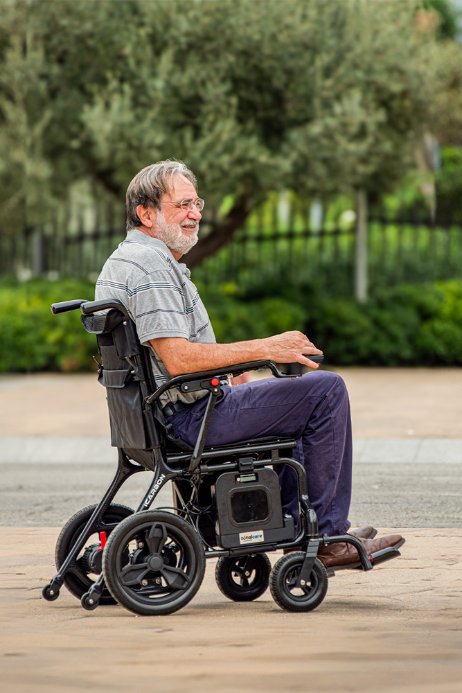 O iCarbon é perfeito para a mobilidade em espaços apertados graças às suas dimensões compactas (55 cm de largura e 74 cm de profundidade) e ao seu raio de viragem de 90 cm. Isto garante uma manobrabilidade perfeita em espaços apertados, tanto em ambientes interiores como exteriores.