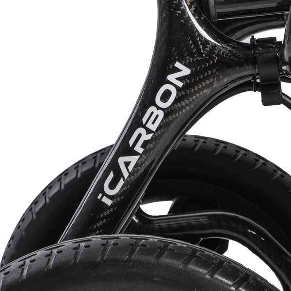 A cadeira iCarbon é fabricada em fibra de carbono, um material excecionalmente leve e robusto. Oferece uma aparência elegante e moderna. A fibra de carbono não só garante um passeio suave e confortável, como também absorve os impactos de forma eficaz, proporcionando uma experiência confortável e segura ao utilizador.