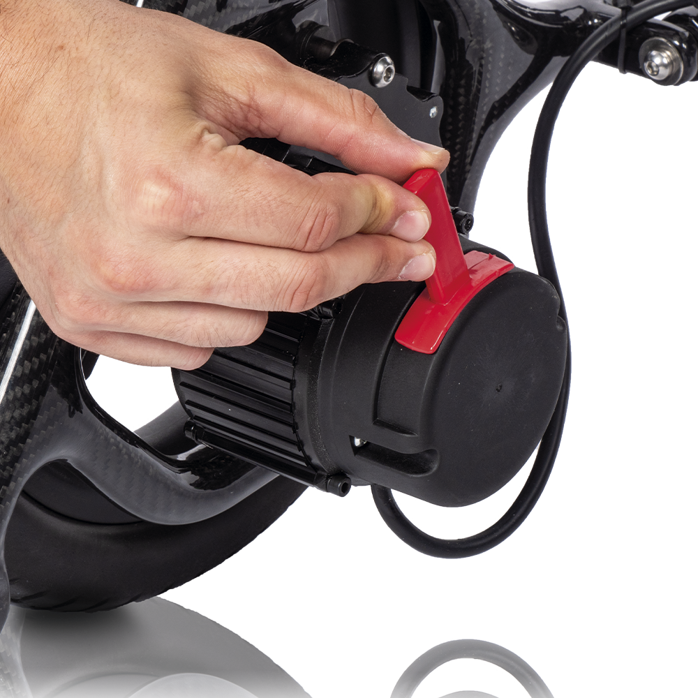 Dobrar o iCarbon é rápido e fácil, reduzindo-o a um tamanho compacto (36 cm de largura e 70 cm de altura), sendo perfeito para guardar em qualquer espaço pequeno ou bagageira. O seu peso ultraleve facilita ainda mais o transporte, tornando o processo descomplicado.