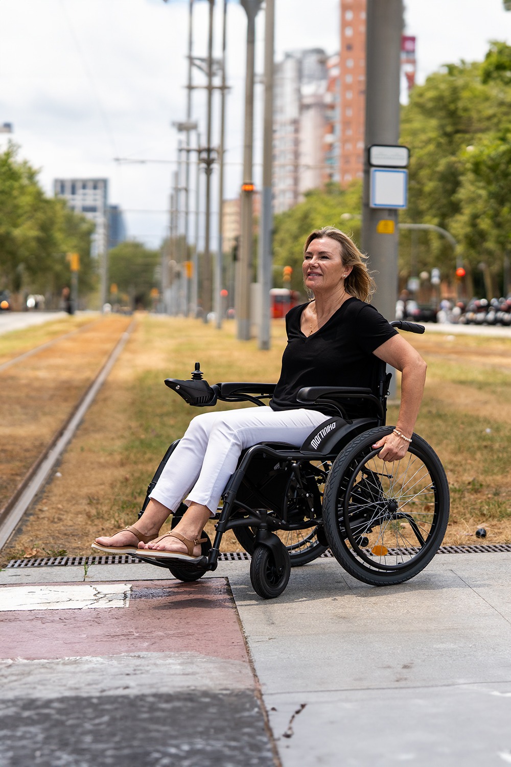 La silla plegable Martinika se distingue por su facilidad y rapidez de plegado como una silla de ruedas manual. Gracias a sus motores paralelos y el respaldo abatible, ofrece el plegado más eficiente del mercado, reduciendo su ancho a tan solo 35 cm.