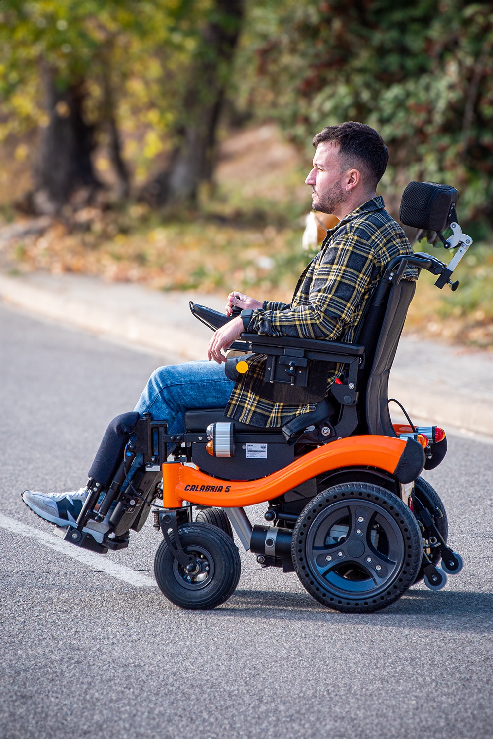 O assento da Calabria 5 tem uma função de inclinação eletrónica que é controlada pelo comando manual. Com o toque de um botão, é possível ajustar a inclinação do assento numa gama de 0° a 18°, permitindo que a posição seja adaptada às necessidades do utilizador.
